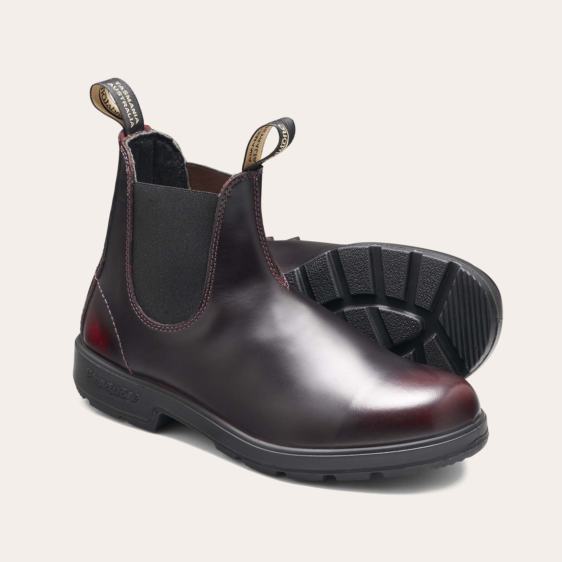 Un look sencillamente sorprendente. Las botas Blundstone Original #2412, con su empeine de piel cepillada de color burdeos, que deja entrever el color de la capa inferior, ofrecen un aspecto desgastado, elegante y moderno. Este look hace de estas botas la elección ideal tanto para ocasiones formales como para eventos informales, pero elegantes.
